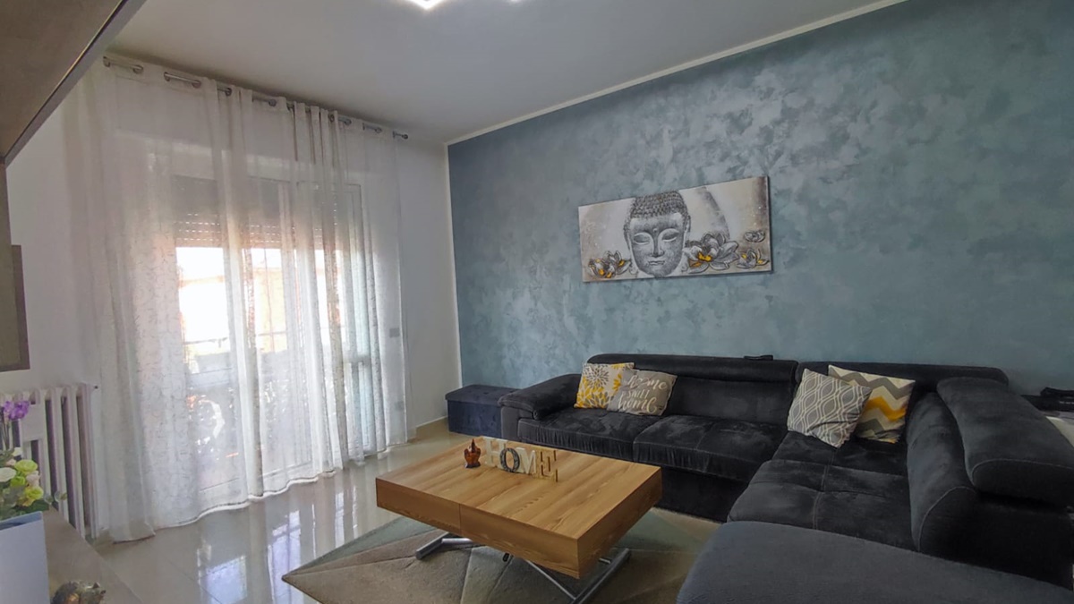 Pogliano Milanese, a pochi minuti dal centro paese, dal centro sportivo e dalla Strada Statale del Sempione, comodo con asilo, scuole e parchetti, in piccola palazzina di due piani con solo sei famiglie, ottimo ed elegante appartamento di due locali, posto al primo piano, senza ascensore. L'appartamento è composto da un comodo ingresso con ripostiglio, cucina abitabile con finestra e portafinestra che dà accesso al balcone, completo di tenda da sole; dall'ingresso si accede al soggiorno, ampio e di forma regolare e al disimpegno notte, dove troviamo un armadio a muro, in cui sono stati posizionate la lavatrice e l'asciugatrice, e dallo stesso disimpegno si accede al bagno e alla camera da letto, spaziosa e di forma regolare, con accesso su secondo balcone. Lo stato interno è perfetto, completamente e finemente ristrutturato e la tripla esposizione garantisce una fantastica luminosità a tutti i locali. L'impianto di riscaldamento è autonomo, è presente l'impianto di climatizzazione e le spese condominiali sono contenute. Soluzione libera entro 10 mesi dal compromesso.