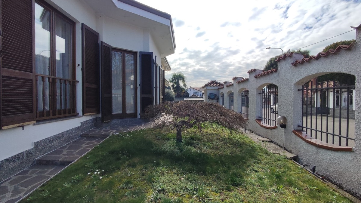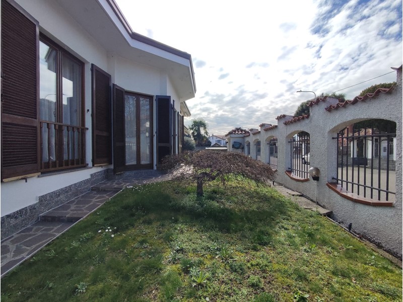 Lainate, zona Grancia, in contesto residenziale di sole ville e piccole palazzine, proponiamo stupenda villa singola su unico livello, libera su 4 lati. Dal cancelletto d'ingresso, si accede al giardino che si sviluppa su 3 lati, e da qui all'interno della villa. La stessa è così composta: ingresso su comodo disimpegno, che porta all'ampio soggiorno, suddiviso in zona relax con camino e zona pranzo, e in tutti gli ambienti ampie portefinestre, tutte esposte sul giardino, danno luce all'ambiente; é presente una comoda cucina abitabile con balcone. Un secondo disimpegno immette nella zona notte, dove troviamo due ampie camere da letto e doppi servizi. A completare l'intero piano abbiamo una terrazza verandata, dotata di infissi con ante scorrevoli, alla quale si accede dal soggiorno. Una comoda scala in muratura porta al piano seminterrato, dove troviamo una spaziosa taverna, oltre a locali disimpegno, lavanderia e tecnico; il piano seminterrato è direttamente collegato all'ampia autorimessa singola, da cui si accede esternamente da carraio e rampa privata. Lo stato interno è in ottime condizioni di manutenzione generale, con tutti gli infissi in legno con doppi vetri e persiane esterne in legno. La soluzione si rende libera entro 12 mesi da un compromesso.