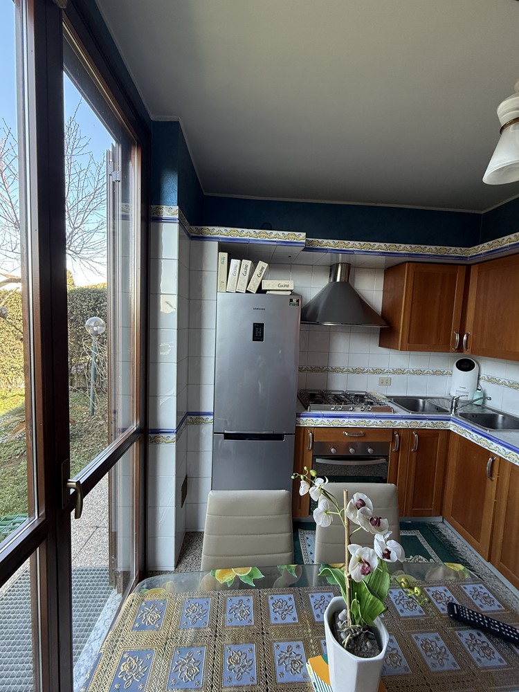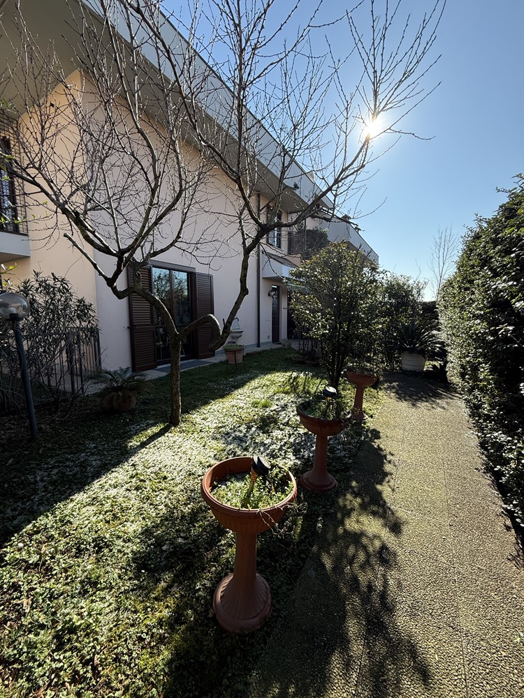 VILLA A SCHIERA CON GIARDINO, BOX, MANSARDA E TAVERNA Bollate (fr. Cascina del Sole confine con Novate Milanese), Via Cascina del Sole n.98 In contesto di villette a schiera, proponiamo in vendita questa bellissima villetta con ampio spazio esterno su 3 lati, box doppio e suddivisa come segue: L’immobile si sviluppa su una superficie commerciale di circa 200mq disposta su 4 livelli: PIANO TERRA: Ingresso su soggiorno doppio con camino e doppia uscita sul giardino esterno, ampie vetrate, cucina abitabile con porta finestra per uscita sul giardino, bagno padronale finestrato con box doccia, scala di collegamento con il piano primo e con la taverna. PIANO PRIMO: Tre ampie camere di cui la matrimoniale con accesso al balcone, bagno finestrato con vasca da bagno. Scala di collegamento alla mansarda. MANSARDA: Ampio open space, piccolo balconcino, camino, bagno finestrato con box doccia. TAVERNA: Ampia taverno con adiacente accesso al box doppio. FINITURE: L’immobile si presenta in ottimo stato sia interno che esterno. Su tutto l’immobile ritroviamo pavimenti in marmo e ceramica, presenza di aria condizionata con funzione inverter caldo/freddo, riscaldamento autonomo per piano con il proprio termostato, infissi in legno doppio vetro, porte interne in legno e porta ingresso blindata. Presenza di sistemi antiintrusione e allarmi. Tripla esposizione: nord-est-ovest. Prezzo di vendita: € 400.000 LIBERO AL ROGITO. Classe Energetica - F 277,36.