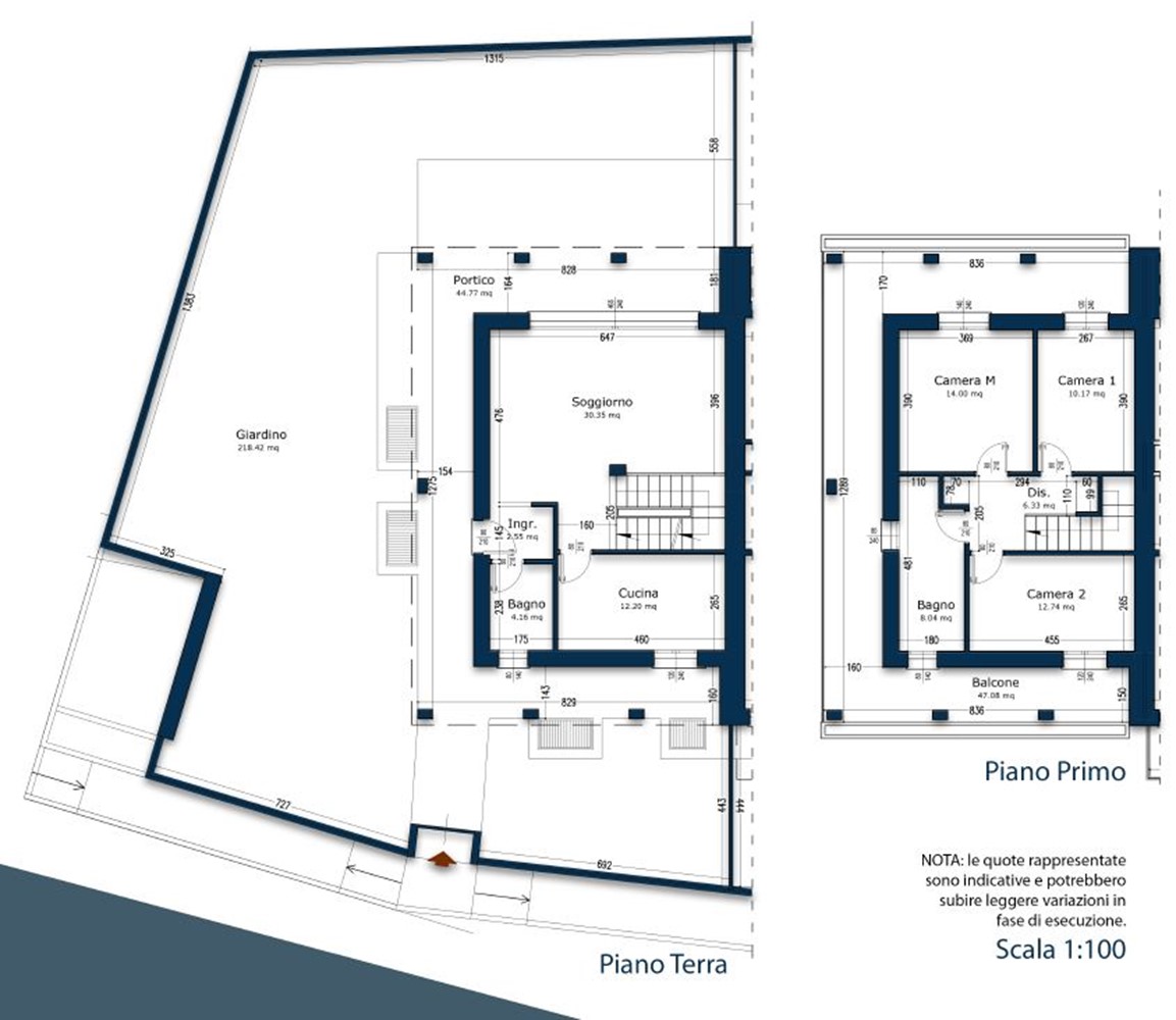 Completano la soluzione una cantina (taverna) con accesso diretto al box quadruplo (da acquistare a parte) e il giardino di 218 mq.